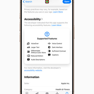Accessibility Nutrition Labels(アクセシビリティ栄養ラベル)は、App Storeの製品ページに新たなセクションを追加し、アプリやゲーム内のアクセシビリティ機能を強調する。このラベルは、ユーザーがアプリをダウンロードする前に、そのアプリがアクセシブルかどうかを判断するための新たな手段を提供し、開発者にとっては、アプリが対応する機能についてユーザーにより良い情報を提供し、教育する機会となる。これには、VoiceOver、音声コントロール、拡大文字、高コントラスト、動きの低減、キャプションなどが含まれる。開発者は、製品ページにアクセシビリティ情報を表示する前に、アプリが満たすべき基準に関する詳細なガイダンスにアクセスできる。